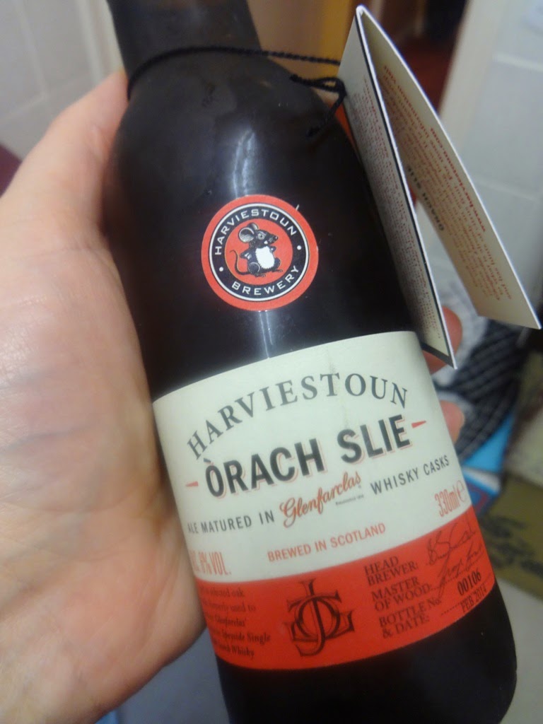 I was lucky enough to get my hands on a bottle of Harviestoun’s Orach Slie, a lager matured in Glenfarclas whisky casks. I was quite excited about this because, although my experience is fairly limited, I haven’t yet found a Harviestoun I don’t like. As I’m not a whisky drinker I didn’t have any knowledge about Glenfarclas, but I assumed it would bring a sweetness to the beer. Was I right? Only one way to find out…